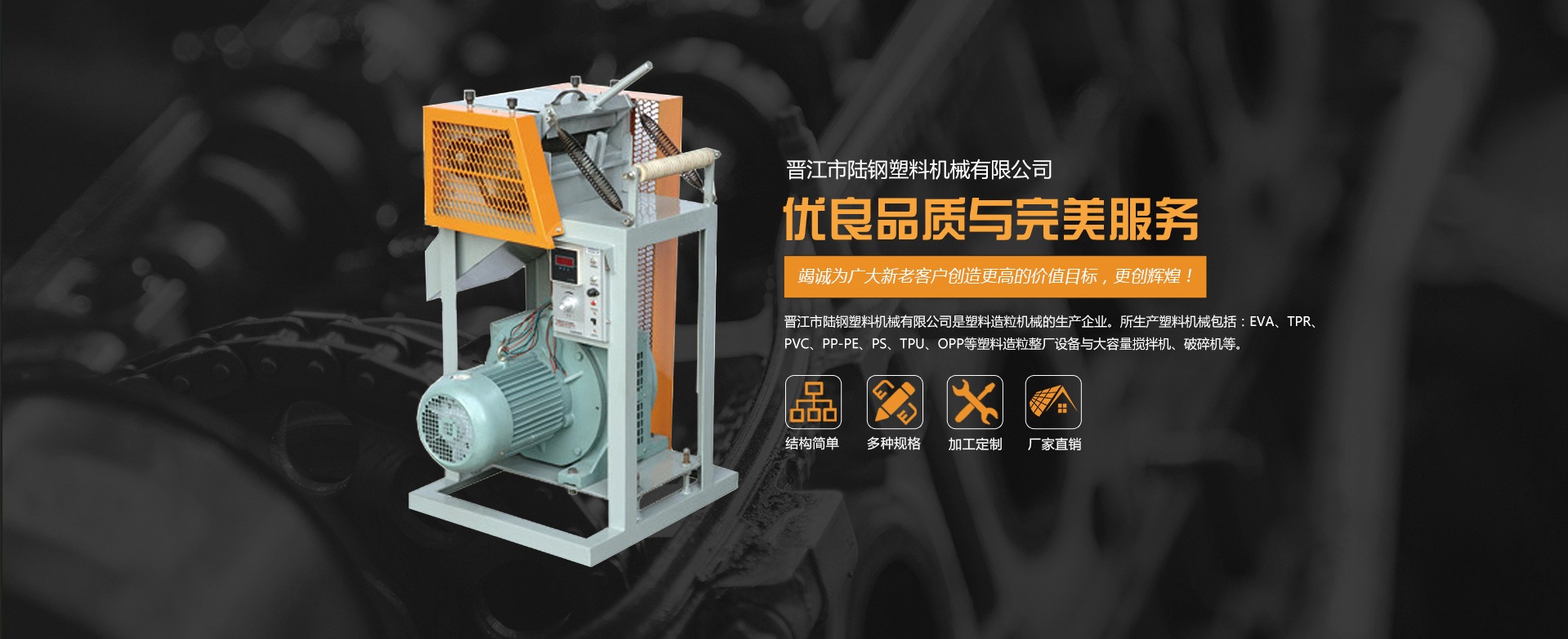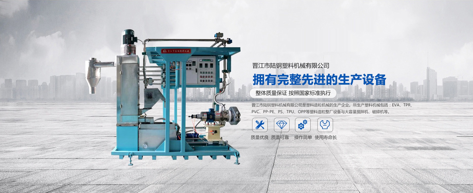 熱烈慶祝晉江市陸鋼塑料機械有限公司網站改版完成!!晉江市陸鋼塑料機械有限公司是塑料造粒機械的生產企業。